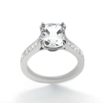 Cushion Cut Diamond Ring With Side Stones