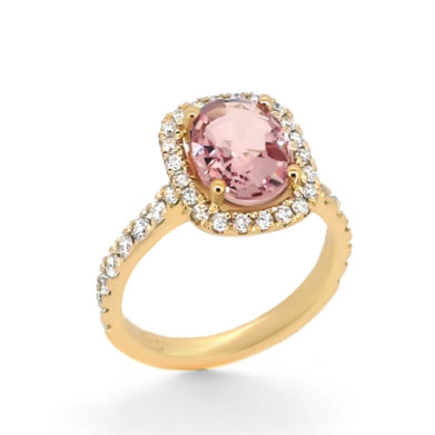 Pink Sapphire Diamond Halo Ring