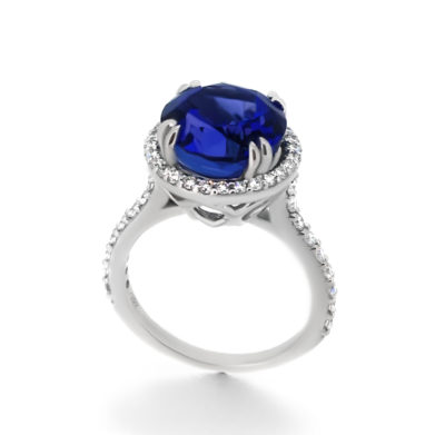 Sapphire and Diamond Halo Engagement Ring