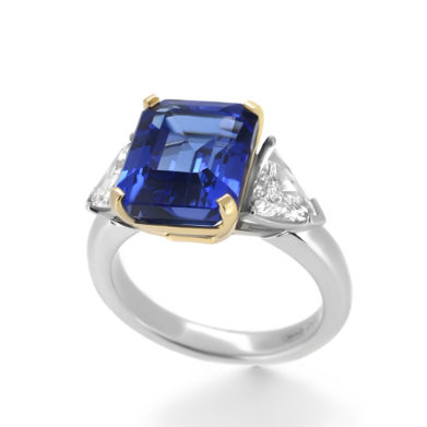 Tanzanite and Trillion Diamond Engagement Ring