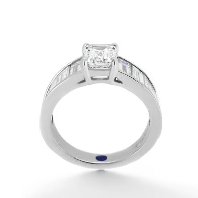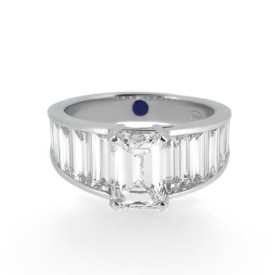 Emerald Diamond and Baguette Side-Stones Engagement Ring